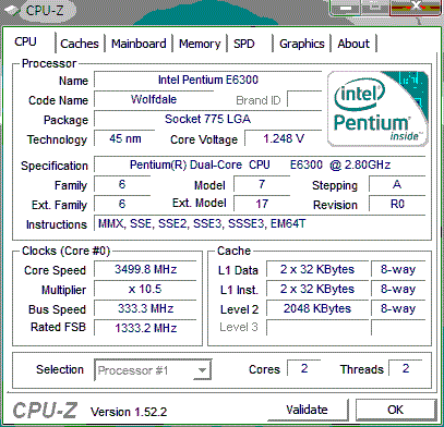 Результат разгона Intel Pentium Dual-Core (Wolfdale-2M)