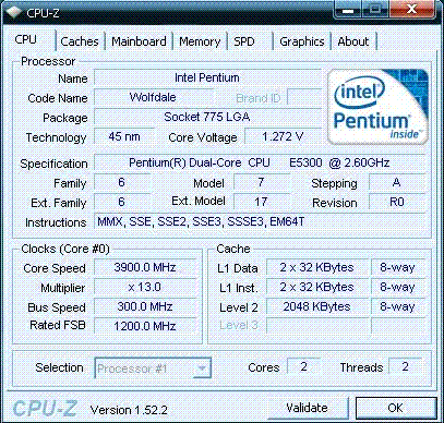 | Разгон, максимально стабильная частота (FSB x Ratio) | 3900 (300 x 13.0) |