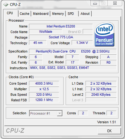 Результат разгона Intel Pentium Dual-Core (Wolfdale-2M)