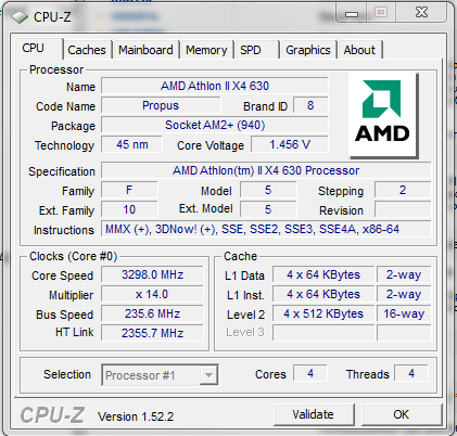 | Процессор (ядро) | AMD Athlon II X4 (Propus) |