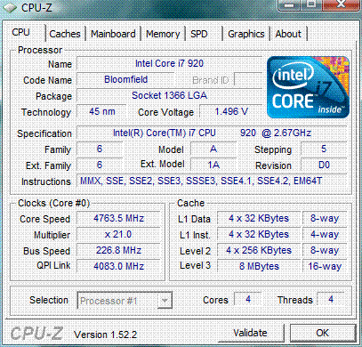 Результат разгона Intel Core i7 (Bloomfield)