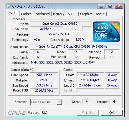 Результат разгона Intel Core 2 Quad (Yorkfield)