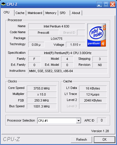 | Процессор (ядро) | Intel Pentium 4 (Prescott-2M) |