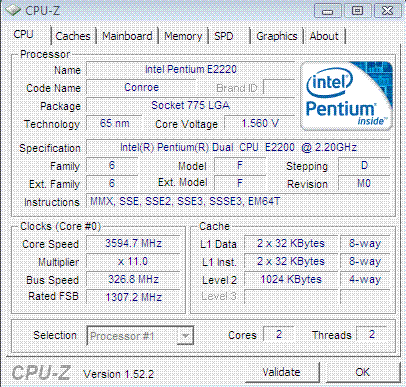 | Процессор (ядро) | Intel Pentium Dual-Core (Conroe-1M) |