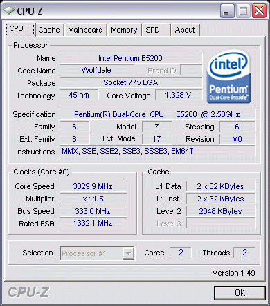 Результат разгона Intel Pentium Dual-Core (Wolfdale-2M)
