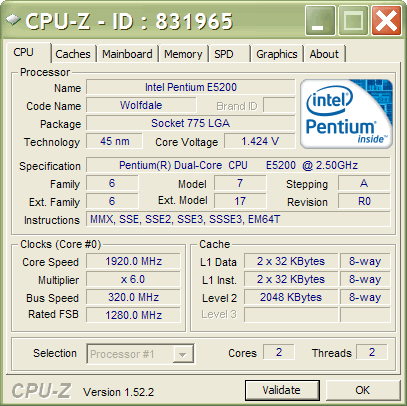 Результат разгона Intel Pentium Dual-Core (Wolfdale-2M)