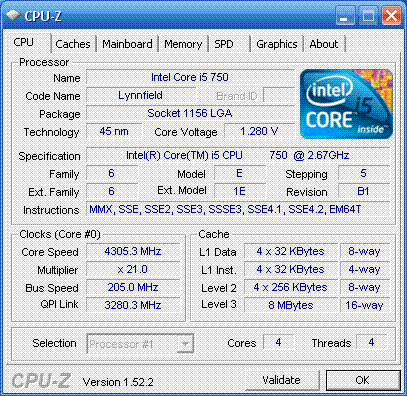 | Разгон, максимально стабильная частота (FSB x Ratio) | 4305 (205 x 21.0) |