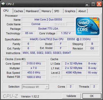 | Процессор (ядро) | Intel Core 2 Duo (Conroe) |