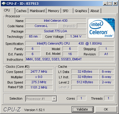 | Процессор (ядро) | Intel Celeron (Conroe-L) |