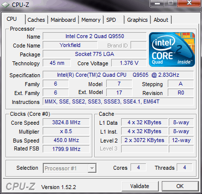 Результат разгона Intel Core 2 Quad (Yorkfield)