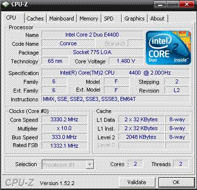 | Разгон, максимально стабильная частота (FSB x Ratio) | 3330 (333 x 10.0) |