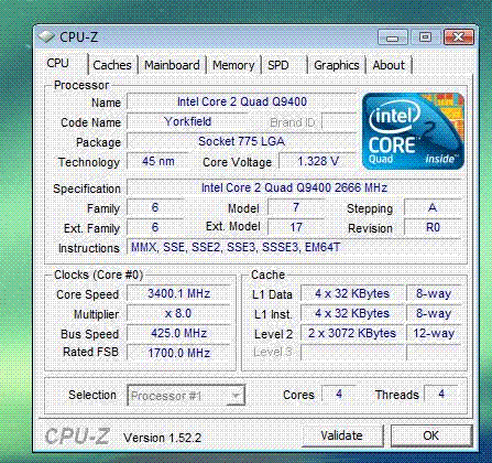 Результат разгона Intel Core 2 Quad (Yorkfield)