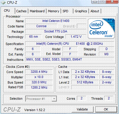 Результат разгона Intel Celeron (Conroe-512)