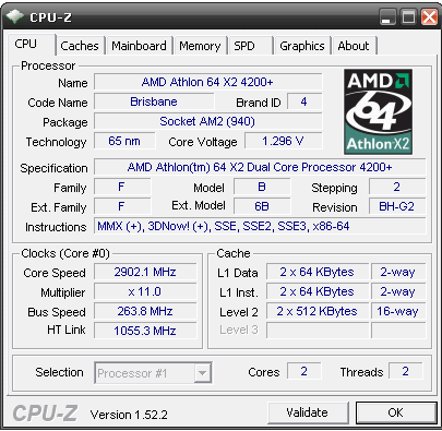 Результат разгона AMD Athlon X2 (Brisbane)