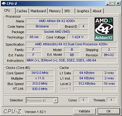 | Процессор (ядро) | AMD Athlon 64 X2 (Brisbane) |