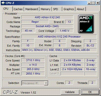 Результат разгона AMD Athlon II X2 (Regor)