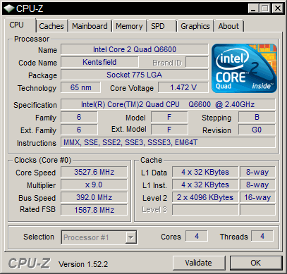 | Процессор (ядро) | Intel Core 2 Quad (Kentsfield) |
