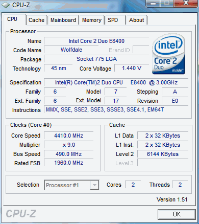 | Разгон, максимально стабильная частота (FSB x Ratio) | 4410 (490 x 9.0) |