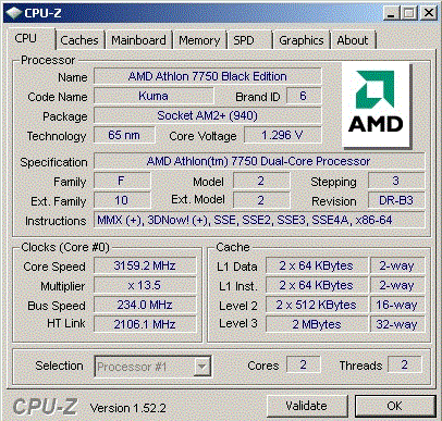 | Процессор (ядро) | AMD Athlon X2 (Kuma) |