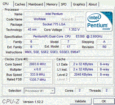 Результат разгона Intel Pentium Dual-Core (Wolfdale-2M)