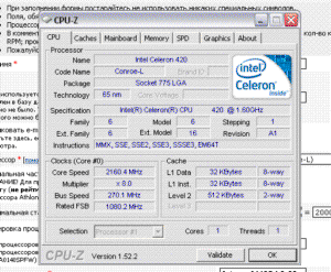 Результат разгона Intel Celeron (Conroe-L)