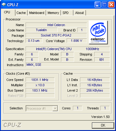 Результат разгона Intel Celeron (Tualatin)