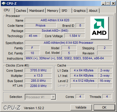 Результат разгона AMD Athlon II X4 (Propus)
