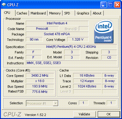 | Процессор (ядро) | Intel Pentium 4 (Prescott) |