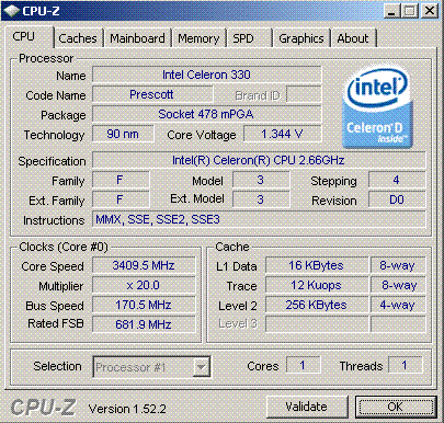 | Процессор (ядро) | Intel Celeron D (Prescott-256) |