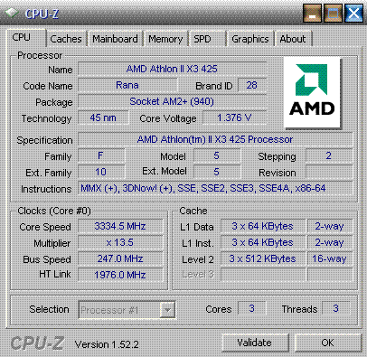 | Процессор (ядро) | AMD Phenom II X3 (Heka) |