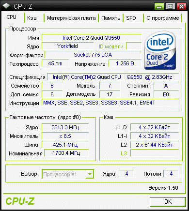 Результат разгона Intel Core 2 Quad (Yorkfield)