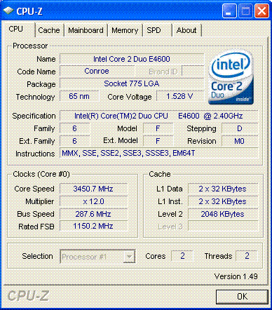 | Разгон, максимально стабильная частота (FSB x Ratio) | 3456 (288 x 12.0) |