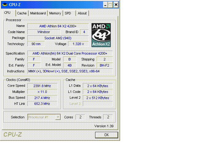 | Процессор (ядро) | AMD Athlon 64 X2 (Windsor) |