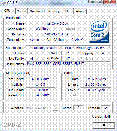 Результат разгона Intel Core 2 Duo (Wolfdale)