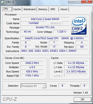 Результат разгона Intel Core 2 Quad (Yorkfield)