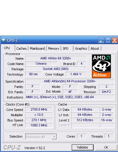 Результат разгона AMD Athlon 64 (Orleans)