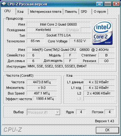 Результат разгона Intel Core 2 Quad (Kentsfield)