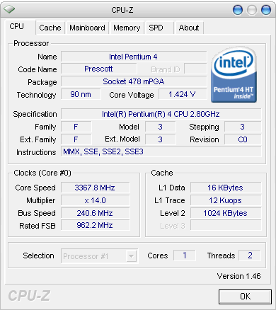 | Процессор (ядро) | Intel Pentium 4 (Prescott) |