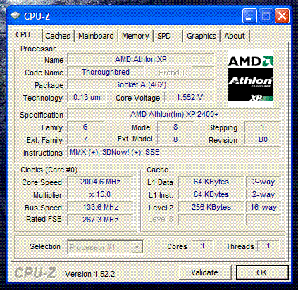 | Процессор (ядро) | AMD Athlon XP (Thoroughbred) |