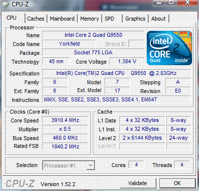 Результат разгона Intel Core 2 Quad (Yorkfield)