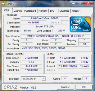 | Разгон, максимально стабильная частота (FSB x Ratio) | 3108 (444 x 7.0) |