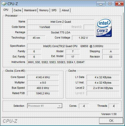 Результат разгона Intel Core 2 Quad (Yorkfield)