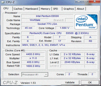 Результат разгона Intel Pentium Dual-Core (Wolfdale-2M)