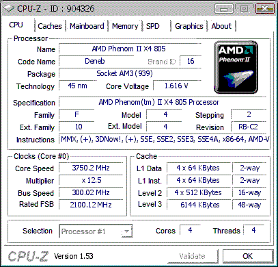 Результат разгона AMD Phenom II X4 (Deneb)
