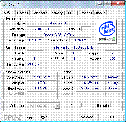 | Процессор (ядро) | Intel Pentium III (Coppermine) |