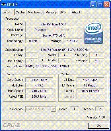 | Процессор (ядро) | Intel Pentium 4 (Prescott) |