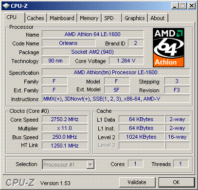 Результат разгона AMD Athlon 64 (Orleans)