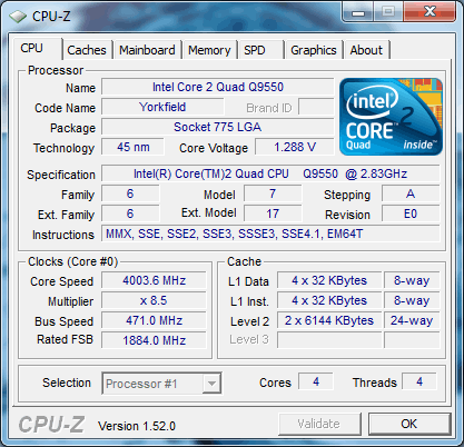 Результат разгона Intel Core 2 Quad (Yorkfield)