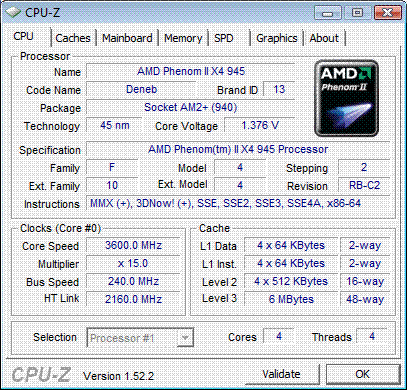 Результат разгона AMD Phenom II X4 (Deneb)