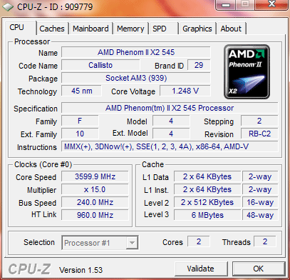 | Процессор (ядро) | AMD Phenom II X2 (Callisto) |